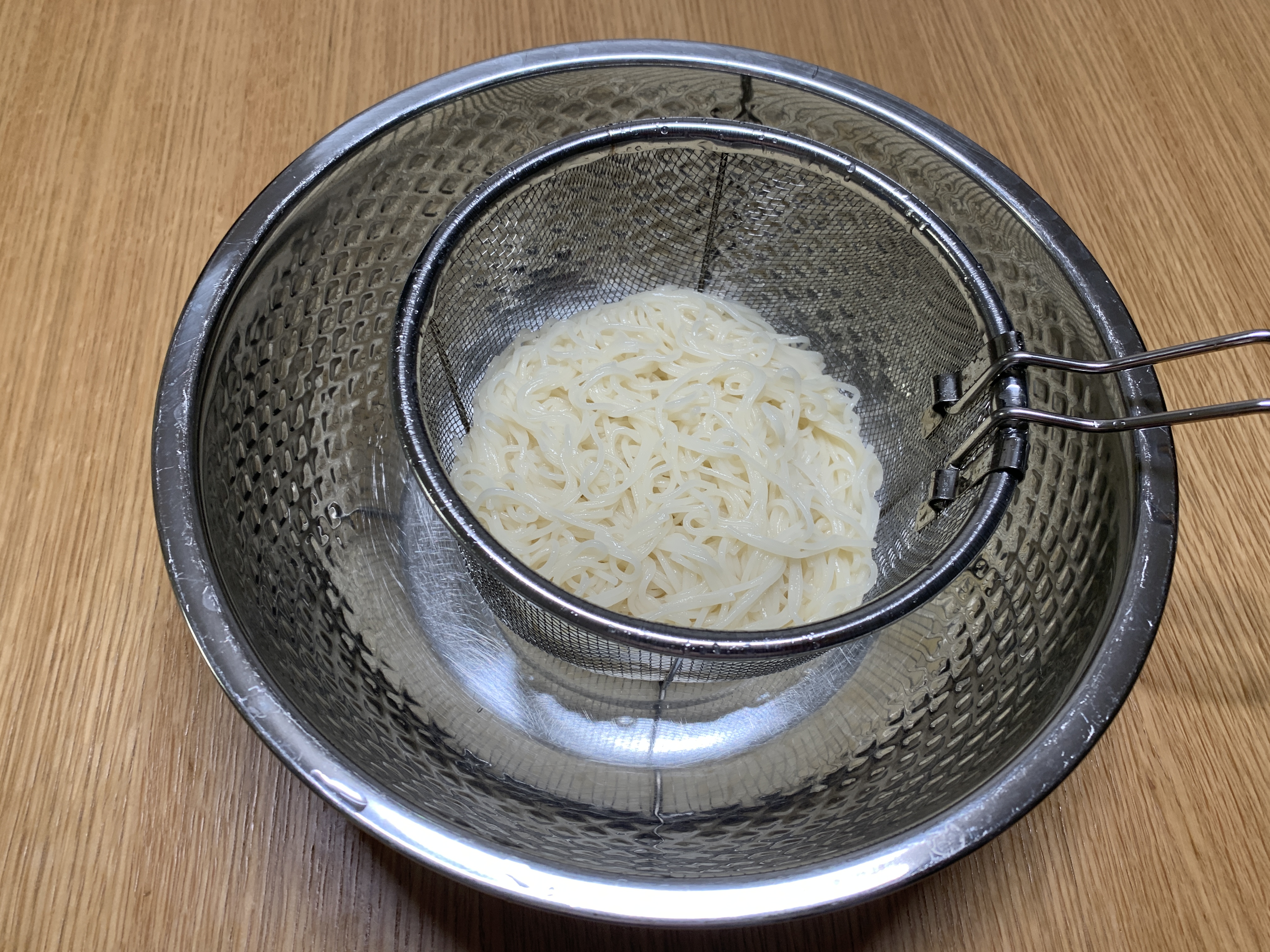 바로 채망으로 국수만 담아 찬물로 쓱쓱
